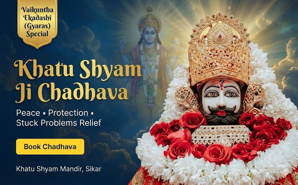 A sacred Nishan Chadhava is offered to Khatu Shyam Ji for devotees facing repeated problems, office stress, and mental tension—to invite support, protection, and smoother progress.