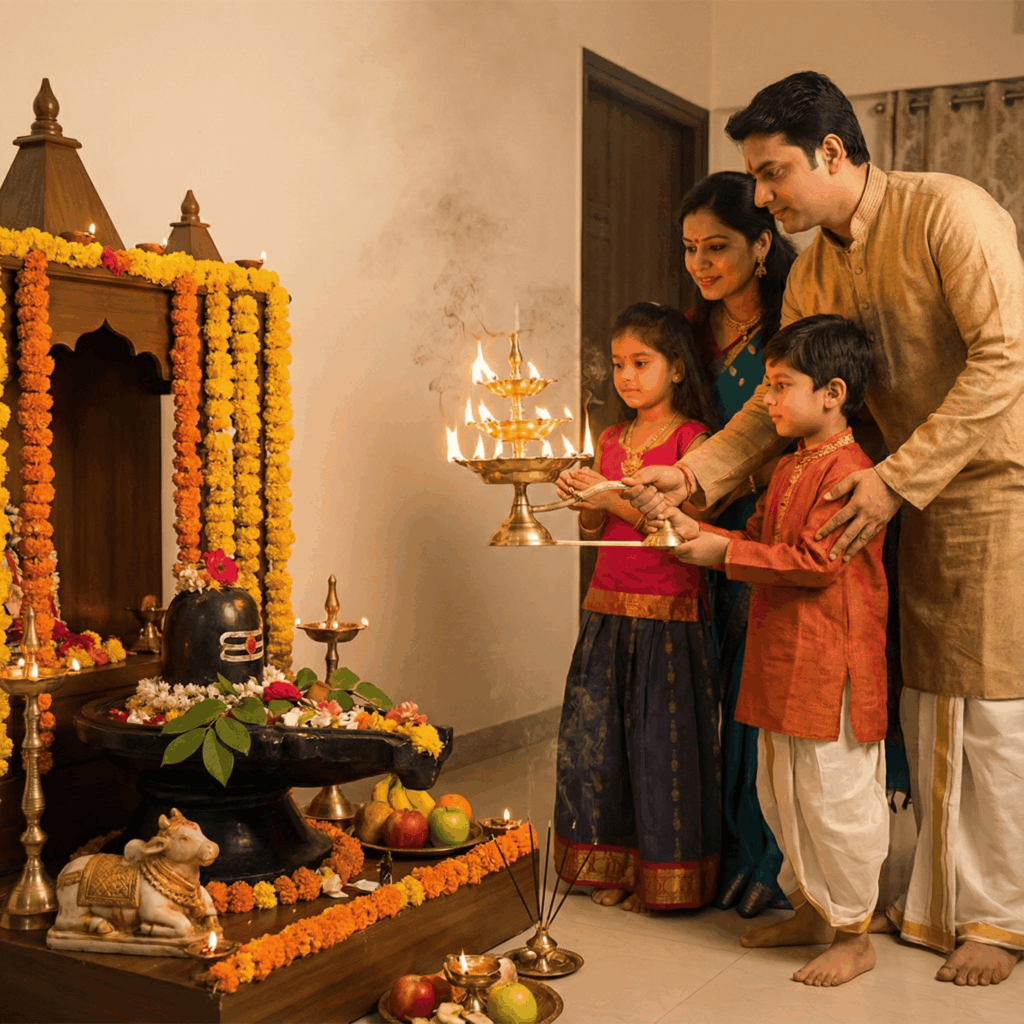 • Use a lamp with three wicks (symbolizing the three eyes of Shiva).